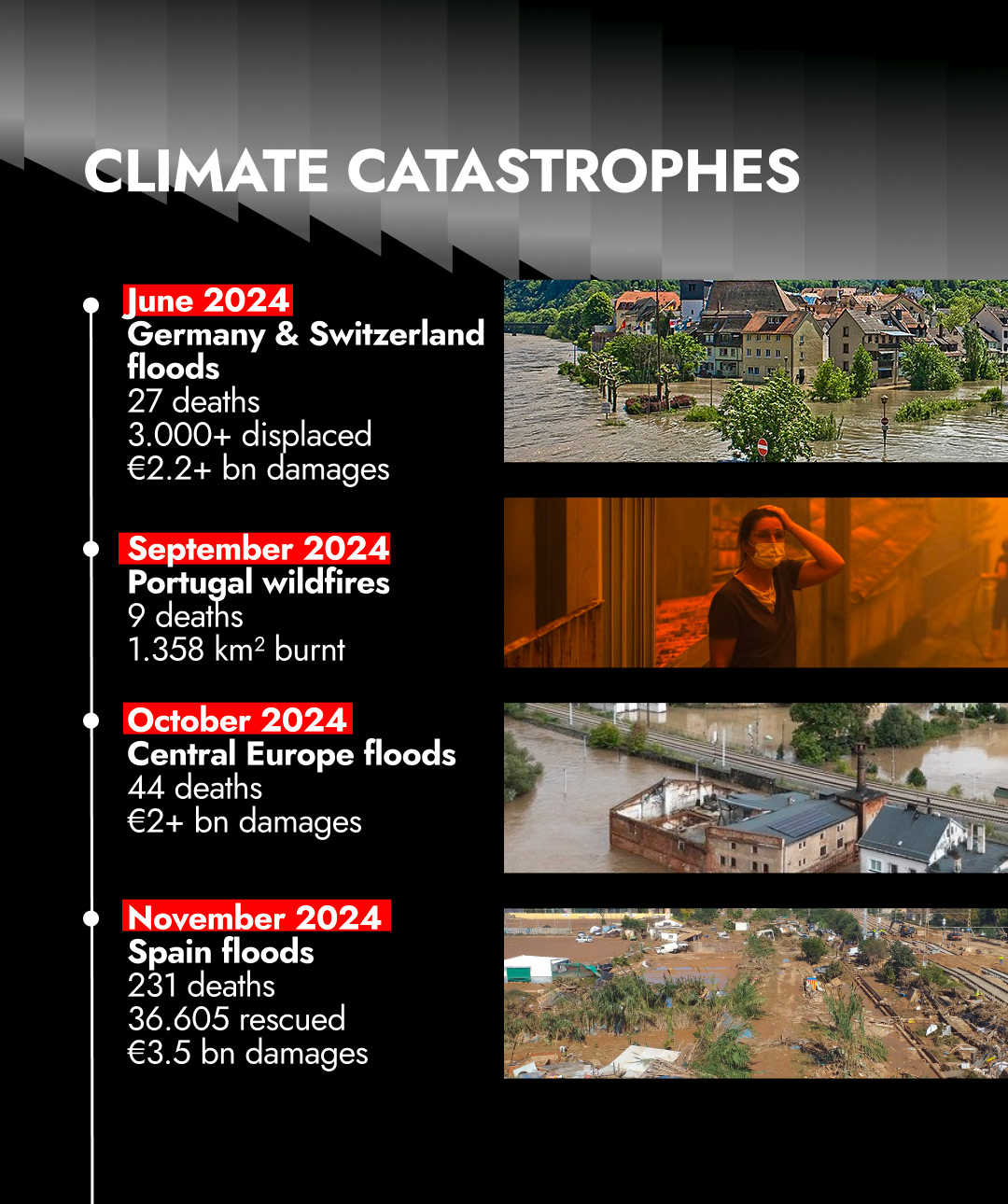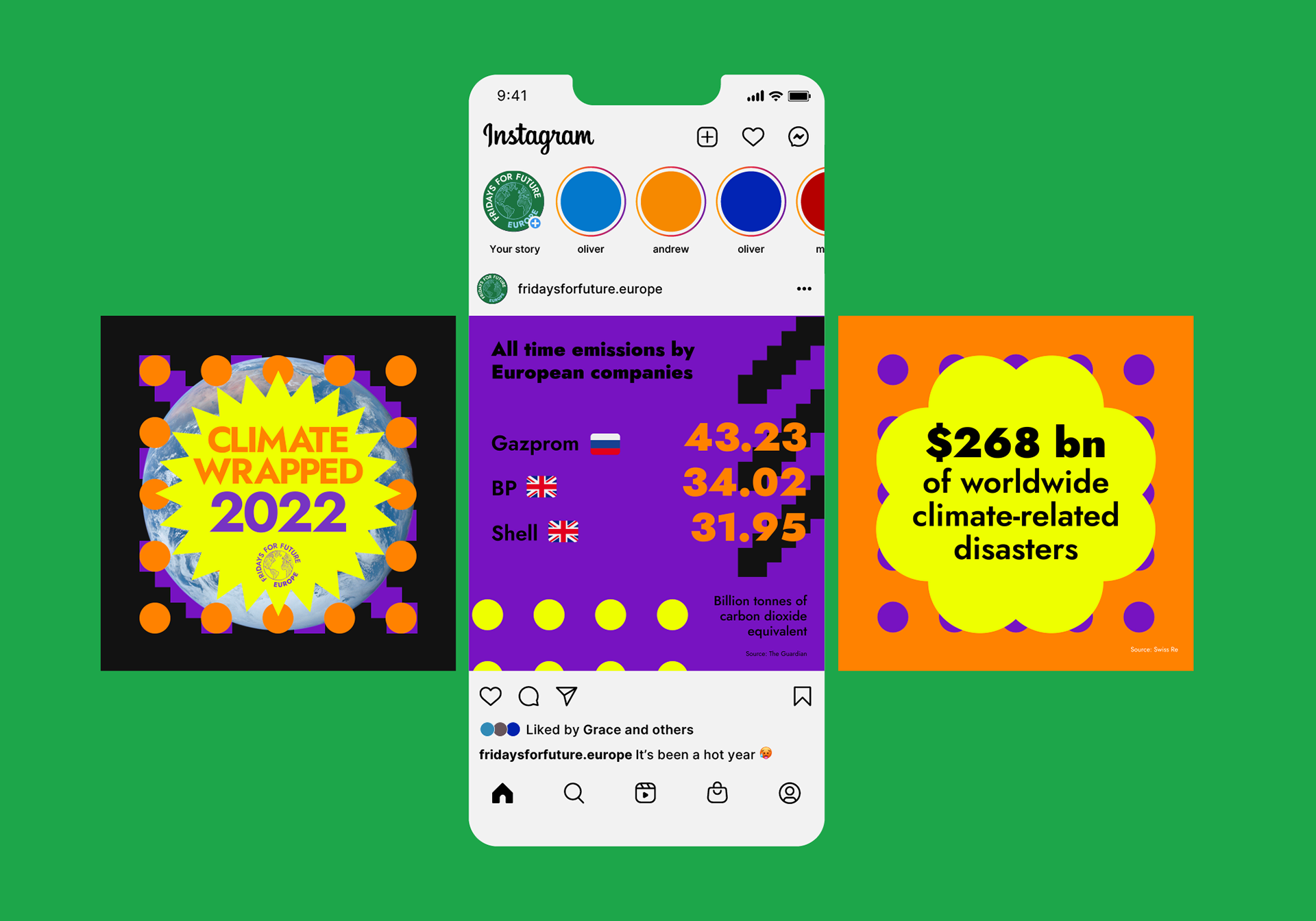 The Climate Wrapped is a yearly recap post highlighting climate events and statistics, such as the increase in CO₂ emissions, yearly deaths caused by polluted air, the most polluting industries, and more. It was created as a parody of the annual Spotify Wrapped.